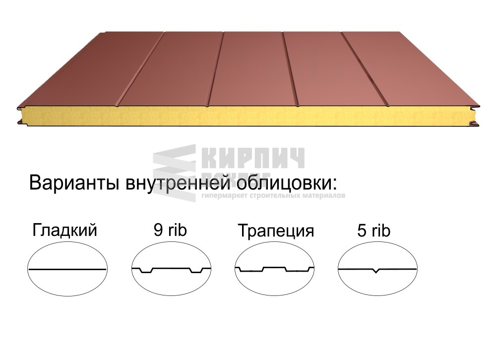 В интернет-магазине "Кирпич Вокруг" Вы можете купить Стеновая трёхслойная сэндвич-панель 5 rib 100мм 1000мм с видимым креплением минеральная вата Полиэстер Доборник в Волгограде, а наши специалисты готовы вам помочь с выбором по адресу: , или оказать консультацию по телефону: .